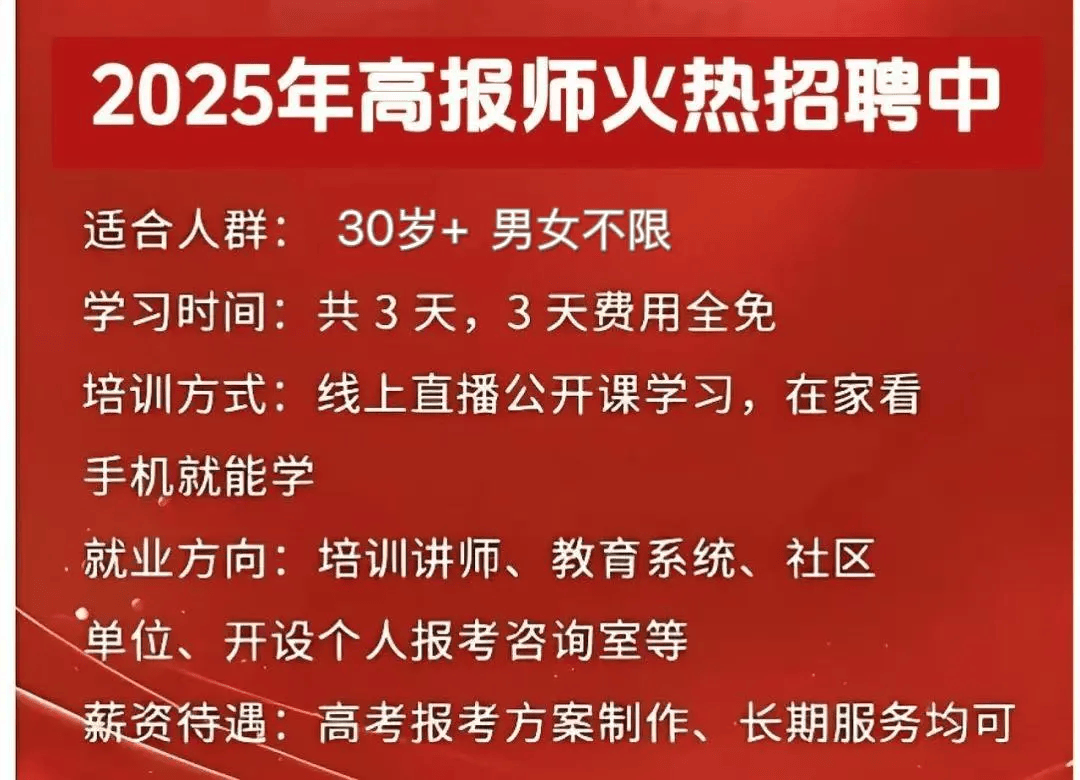 2025年高考报名人数突破1335万人,而目前我国专业高考报考指导师,缺口达30万人,人才需求急剧升高!